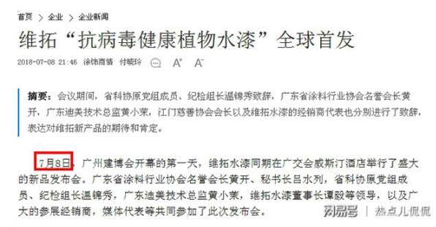 中國粉體網(wǎng)訊 自從2002年SARS病毒發(fā)生以后,人們對(duì)于抗菌抗病毒等產(chǎn)品的關(guān)注度大幅提高。近期,由于廣東維拓化工有限公司和東鵬綠家?guī)缀踉谕粫r(shí)間發(fā)布了新產(chǎn)品——抗病毒健康植物水漆,這原本是涂料界值得高興的事情,但兩家公司都聲稱其公司生產(chǎn)的新產(chǎn)品是全球首發(fā),針對(duì)究竟誰是首發(fā)問題,在涂料界內(nèi)引起了一番探討。畢竟這個(gè)問題的最后結(jié)果將直接影響市場(chǎng)風(fēng)向。