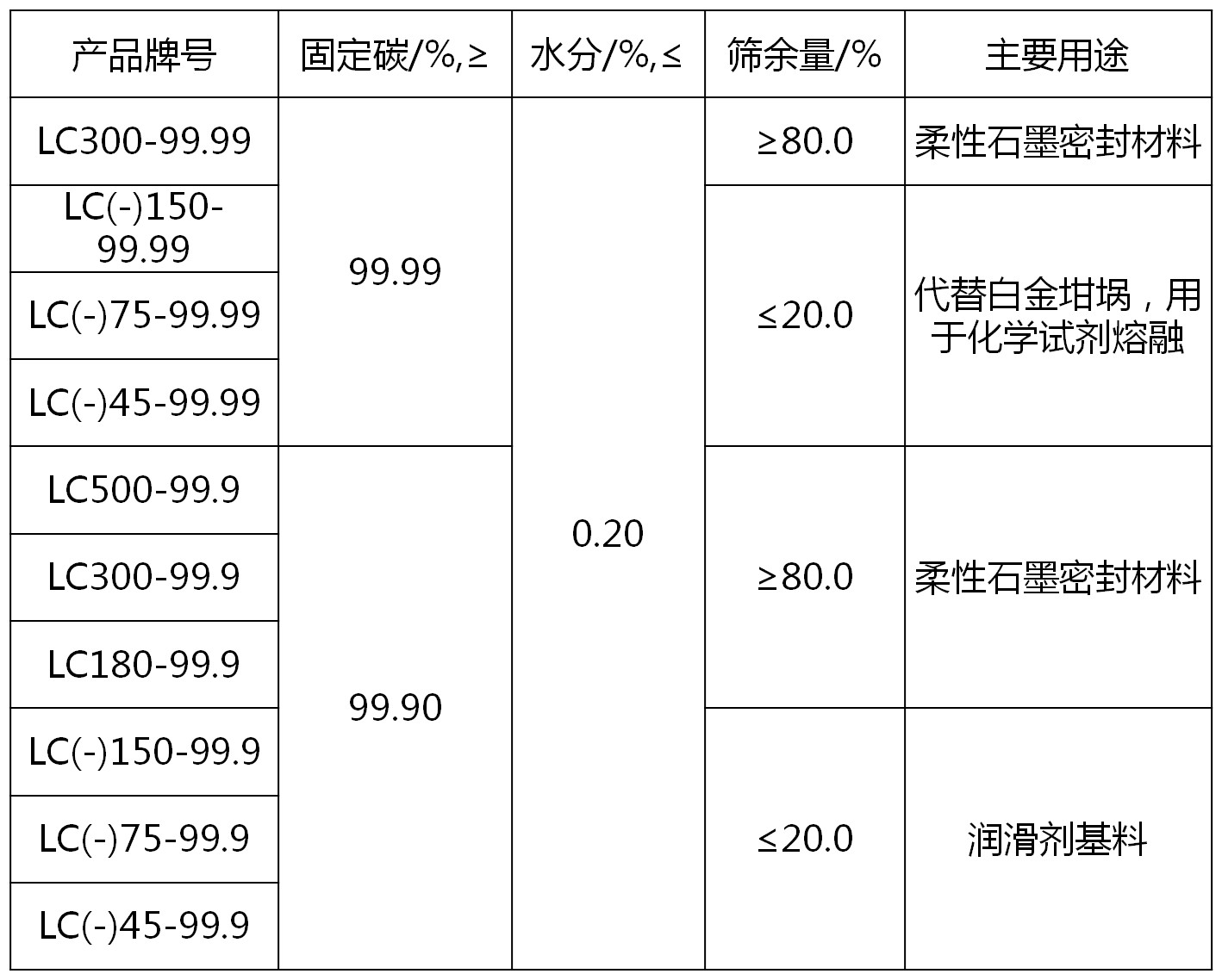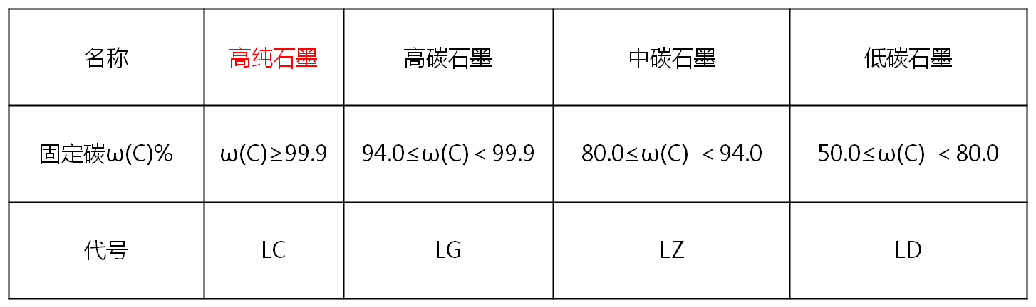 鱗片石墨根據(jù)固定碳含量分為四類:高純石墨、高碳石墨、中碳石墨、低碳石墨。