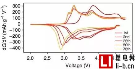 ② 多次循環(huán)后材料的充放電電壓下降。