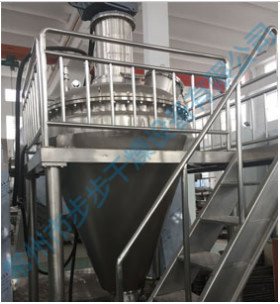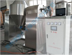 錐形真空混臺干燥機中的物料在容器內受熱是緊貼容器內壁,由螺旋槳葉自下而上旋轉至容器上部,然后沿主軸呈渦流向下。物料在整個干燥過程中始終在分散運動。物料的運動狀態(tài)保證了物料的均衡受熱。