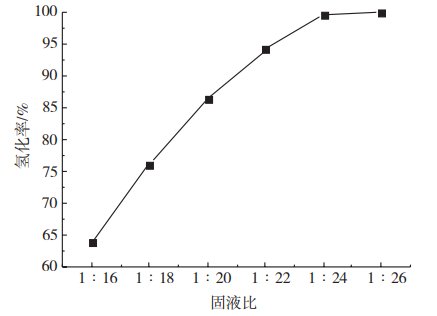 每次稱取200g粗級碳酸鋰,按一定固液比將碳酸鋰調(diào)成漿料,在攪拌下通入CO2流量為60~70L•h-1,氫化60min,使碳酸鋰轉(zhuǎn)化成可溶性的碳酸氫鋰。根據(jù)四季的溫度變化,選擇在相應(yīng)的溫度下氫化,氫化完成后將溶液過濾,收集濾渣。氫化率的計算: