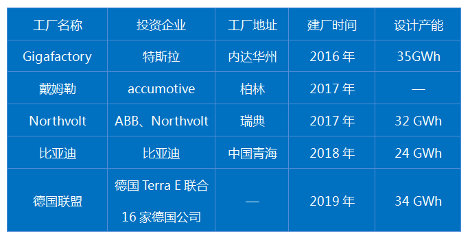 其他規(guī)模略小的電池工廠