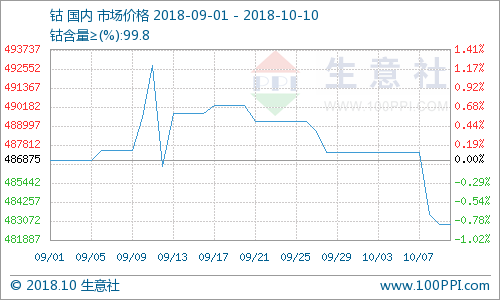 10月10日,國內(nèi)鈷價(jià)報(bào)價(jià)暫穩(wěn),上海地區(qū)鈷粉報(bào)價(jià)暫穩(wěn),實(shí)際成交價(jià)維穩(wěn)。10月10日,國內(nèi)無錫不銹鋼電子交易中心金屬鈷價(jià)476000-496000元/噸,鈷價(jià)報(bào)價(jià)維穩(wěn),10月10日庫存433.75噸,庫存?zhèn)}單減少11噸。鈷市供給處于高位,鈷市處于供微過于求,需求方面,鈷市有一定成交,但仍按需采購為主,高供給增長(zhǎng)低需求增長(zhǎng)導(dǎo)致鈷價(jià)上漲無力,下跌風(fēng)險(xiǎn)仍存。