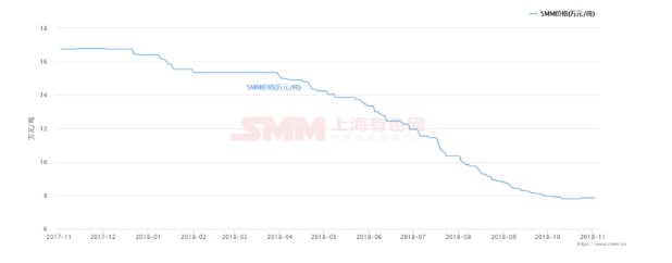 中國粉體網(wǎng)訊 由于鋰需求增速不及供應(yīng)增速,今年前三季度鋰價(jià)持續(xù)走低,碳酸鋰相較于年初1月的16.4萬元/噸,如今(11月)已跌至7.85萬元/噸,跌幅達(dá)52.13%。氫氧化鋰也同樣從1月的14.85萬元/噸跌至11月初的12.3萬元/噸,跌幅達(dá)17%。