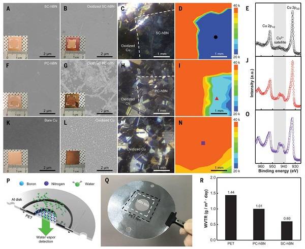圖4. 晶片級SC-hBN film膜的防銅氧化和水蒸氣阻隔保護層應(yīng)用