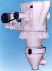 物料由加料口加入上筒體旁的回轉閥門輸送入分級室。在水平安裝的轉子旁分散、分級。粗粉甩至筒壁處向下移動在風柵處受二次空氣作用及中心管的一次空氣吹送。細粉再次脫離粗粉被送至轉子處進行分級,最終粗粉向下移動,由下筒體上的回轉閥排出機外,細粉穿過轉子葉片的間隙由排氣管送出機外,在捕集器中尾氣由風機放至大氣。