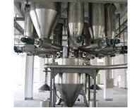 累加式稱重系統(tǒng):通常采用多倉一稱配料工藝,在多個配料倉下設(shè)一個稱重料倉。根據(jù)工藝控制設(shè)定要求,物料在喂料螺桿輸送器輸送下,依次逐倉向稱重料倉喂料。當前一種物料的加料量達到配方設(shè)定值時,相應(yīng)的喂料螺桿停止加料,另一料倉的喂料螺桿則開始啟動加料,依次類推,直到配完最后一種料,稱重料倉達到配方設(shè)定的滿量為止。之后打開出料粉體閥,配好物料進入混合機或反應(yīng)釜。