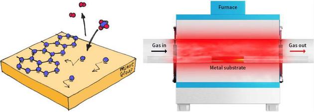 我們把它放到一個爐子里面,在高溫條件下可以做成小單片,也可以通過卷對卷的方式長成大的石墨烯薄膜。