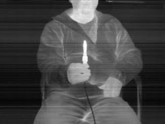 我們可以看到兩張黑白的圖,這里面一個人拿著一個電烙鐵,電烙鐵發(fā)出的光溫度很高,大概三四百度。這是一個中紅外的波段,人體發(fā)出的是遠紅外的波段。