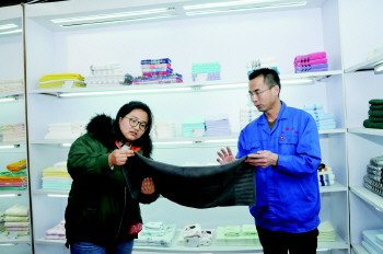 在淄博飛獅巾被有限公司廠區(qū),副總經(jīng)理董中華告訴記者,企業(yè)一直非常注重產(chǎn)品的品質(zhì),堅(jiān)持中高端的產(chǎn)品定位。淄博飛獅巾被有限公司是從1999年改制的新型的股份制企業(yè),改制以后,企業(yè)一直以出口貼牌訂單式經(jīng)營為主。在去年周村區(qū)政府組織的院士專家周村行活動(dòng)中,公司與青島大學(xué)紡織學(xué)院簽訂合作協(xié)議,研究出了石墨烯毛巾,淄博飛獅巾被有限公司也成為了全國首家將石墨烯應(yīng)用于毛巾的企業(yè)。淄博飛獅巾被有限公司研發(fā)設(shè)計(jì)中心主任王盛說:“石墨烯有兩種,一種是礦物質(zhì)的,一種是從植物里提煉的。我們使用的原材料是從玉米纖維里邊提取出來的,所以它是非常環(huán)保的,而且我們在國內(nèi)外也通過了相關(guān)的檢測。使用石墨烯以后有幾個(gè)優(yōu)點(diǎn),一個(gè)是抗菌抑菌,另外還會(huì)具備遠(yuǎn)紅外的功能!
