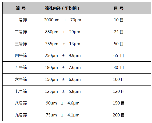 目前,我國(guó)藥品生產(chǎn)所用篩的標(biāo)準(zhǔn)是美國(guó)泰勒標(biāo)準(zhǔn)和《中國(guó)藥典》標(biāo)準(zhǔn)!吨袊(guó)藥典》(2010版)所用藥篩,選用國(guó)家標(biāo)準(zhǔn)的R40/3系列,共分為九種篩號(hào),篩號(hào)數(shù)越大,粉末越細(xì)。