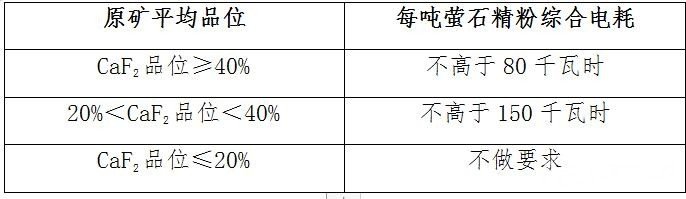 (二十二)新建和擴建螢石項目,建立能耗核算體系,按原礦平均品位的不同,每噸螢石精粉的選礦綜合電耗要達到以下規(guī)定: