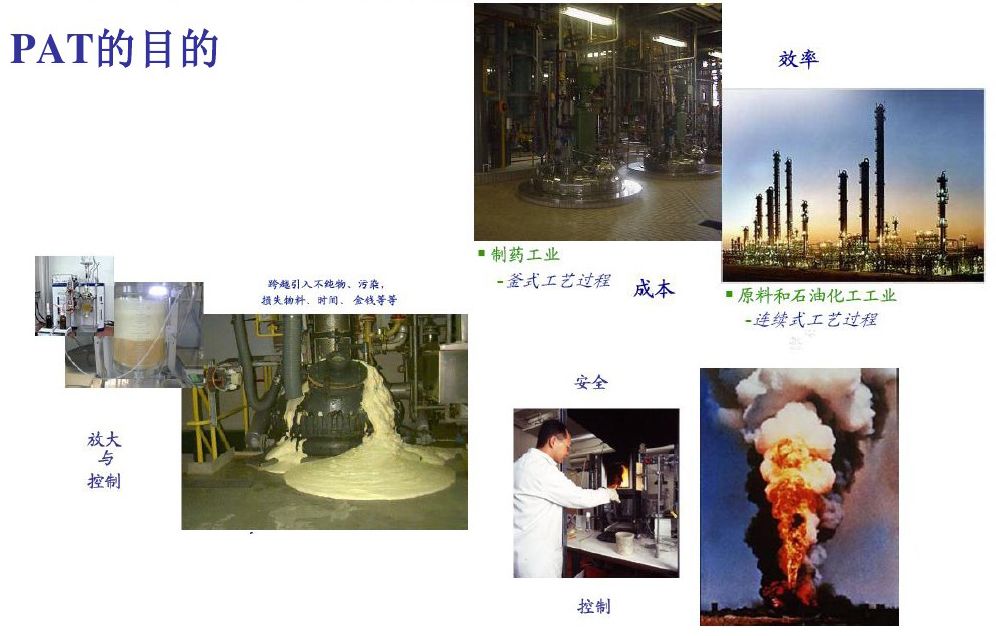 因制藥行業(yè)與其他行業(yè)有很大區(qū)別,所以對(duì)過程控制的要求也與其他行業(yè)不同。PAT提供了從現(xiàn)有的“文件質(zhì)量的檢查”向“持續(xù)的質(zhì)量保證”轉(zhuǎn)移的機(jī)會(huì),它可以改善我們確!皩①|(zhì)量設(shè)計(jì)進(jìn)工藝”或“質(zhì)量來自于設(shè)計(jì)”的能力,這樣才能最終能實(shí)現(xiàn)GMP的真實(shí)的靈魂。通過在工藝過程中實(shí)時(shí)測(cè)量原料,中間產(chǎn)品,在制品以及工藝過程本身關(guān)鍵因素的一套設(shè)計(jì),分析以及生產(chǎn)控制系統(tǒng),其目的是為了保證最終產(chǎn)品質(zhì)量。