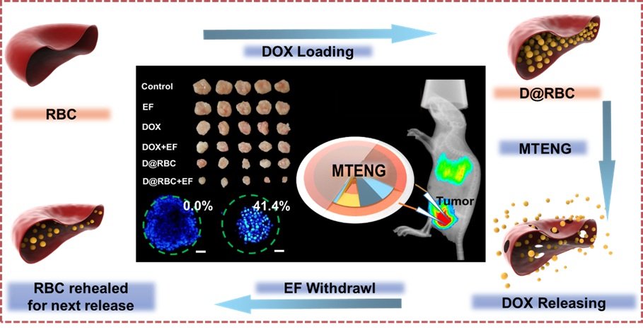 紅細胞具有長達120天的體內(nèi)循環(huán)時間,良好的穩(wěn)定性和伸縮性,無外移植物的免疫原性,是一種很好的腫瘤藥物遞送載體。同時,載藥紅細胞可對高壓電場刺激產(chǎn)生響應(yīng)性釋放。但傳統(tǒng)高壓電源設(shè)備體積龐大,安全系數(shù)低,患者無法自主操作,這些因素阻礙了電場控制式藥物遞送系統(tǒng)在腫瘤治療中的應(yīng)用。