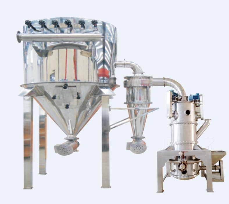 藥物粉體在氣流膨脹工況下粉碎,不會升溫,適用于熱敏性、低熔點(diǎn)、含糖份及有揮發(fā)性物料的超細(xì)粉碎;