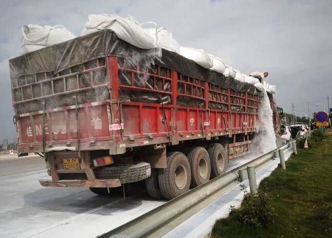“年初五下午兩點半,(廣西)欽州西收費站出口,一臺大貨車出收費站的時候車頂掛到收費站欄桿,一時間撒得滿地的氧化鋁,不知道這種粉對人體皮膚有沒有傷害,昨天大堵車到處是人,要是有毒就后果不堪設(shè)想了!
