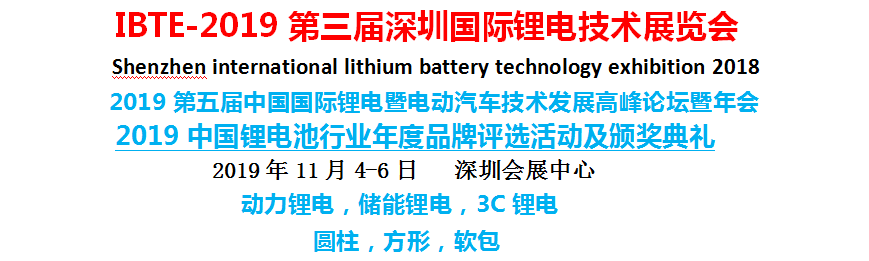 歡迎參加2019第三屆深圳國(guó)際鋰電技術(shù)展覽會(huì),簡(jiǎn)稱:深圳鋰電技術(shù)展 IBTE ,此會(huì)是中國(guó)最專業(yè)的鋰電池技術(shù)展覽會(huì),專注于:動(dòng)力鋰電,儲(chǔ)能鋰電,3C鋰電,展會(huì)由:鋰電百人會(huì),第一鋰電網(wǎng),中國(guó)充電樁網(wǎng),賀勵(lì)博覽集團(tuán),深圳市電池行業(yè)協(xié)會(huì)全程組織舉辦!同期舉辦:2019第五屆中國(guó)國(guó)際鋰電暨電動(dòng)汽車技術(shù)發(fā)展高峰論壇(金磚鋰電峰會(huì)),深圳電動(dòng)汽車制造技術(shù)展、深圳儲(chǔ)能技術(shù)展,深圳氫燃料電池汽車技術(shù)展,深圳充電樁技術(shù)設(shè)備展,2019中國(guó)鋰電池行業(yè)年度品牌評(píng)選活動(dòng)。