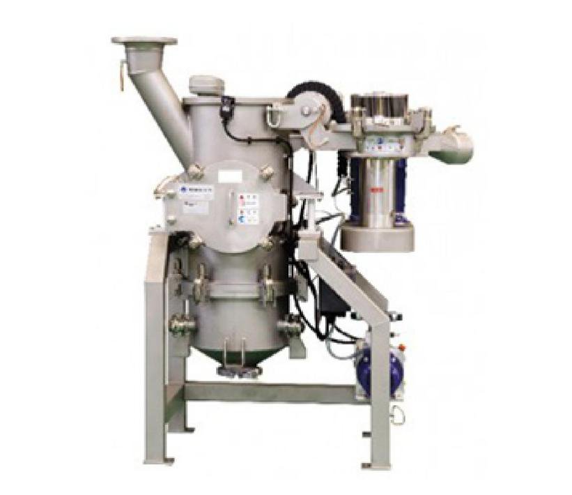 多數(shù)氣流粉碎機(jī)對(duì)于入料粒度有一定的上限要求。以流化床式氣流粉碎機(jī)為例,物料進(jìn)入粉碎腔后得到充分加速后才能與其他粒子碰撞而粉碎。大粒子進(jìn)入粉碎腔后難以得到充分加速,會(huì)使其在機(jī)內(nèi)停留時(shí)間過(guò)長(zhǎng),造成能耗過(guò)高。所以,在大規(guī)模生產(chǎn)超細(xì)粉體時(shí),對(duì)于粒徑過(guò)大的原料進(jìn)行預(yù)粉碎是節(jié)能降耗的一個(gè)行之有效的辦法。