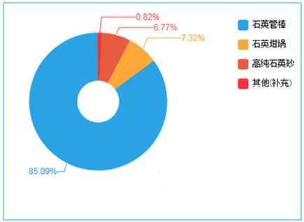 從業(yè)務(wù)結(jié)構(gòu)來看,“石英管”、“多晶石英坩鍋”、“高純石英砂”是企業(yè)營業(yè)收入的主要來源。具體而言, “石英管”營業(yè)收入為5.4億,營收占比為85.8%!岸嗑③徨仭睜I業(yè)收入為4634.3萬,營收占比為7.4%!案呒兪⑸啊睜I業(yè)收入為4285.5萬,營收占比為6.8%。