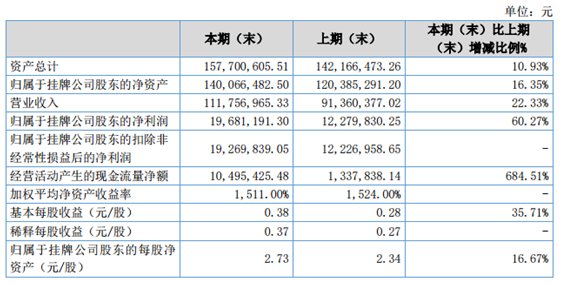 凱德石英(835179)于3月19日發(fā)布(2018年度)業(yè)績報告,公司營業(yè)總收入111,756,965.33元,比去年同期(91,360,377.02)增長22.33%,歸屬于掛牌公司股東的凈利潤19,681,191.30元,比去年同期12,279,830.25元增長60.27%,基本每股收益(元/每股)為0.38元,比去年同期(0.28)元增長35.71%。