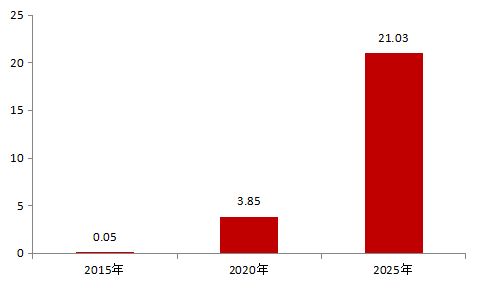 2015-2025全球石墨烯行業(yè)市場規(guī)模及預測(單位:億美元)