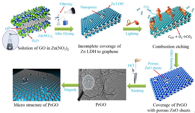 中國(guó)粉體網(wǎng)訊 多孔石墨烯作為一種重要的石墨烯衍生物,不僅具有石墨烯本身的優(yōu)異性質(zhì),而且相比完美晶格的石墨烯表面,孔的引入可以產(chǎn)生許多獨(dú)特的性質(zhì),比如:開放的能帶間隙、較大的實(shí)際比表面積、堅(jiān)韌的機(jī)械強(qiáng)度、優(yōu)異的傳質(zhì)能力等,進(jìn)而使其在能源、催化、環(huán)境、微納分析及傳感等領(lǐng)域展示出廣闊的應(yīng)用前景。目前,多孔石墨烯的制備方法從宏觀角度來(lái)講可分為自上而下法——電子束或離子束轟擊、化學(xué)刻蝕等,和自下而上法——從單體直接化學(xué)合成等。然而這些方法通常需要昂貴的設(shè)備、苛刻的反應(yīng)條件以及較長(zhǎng)的反應(yīng)時(shí)間。