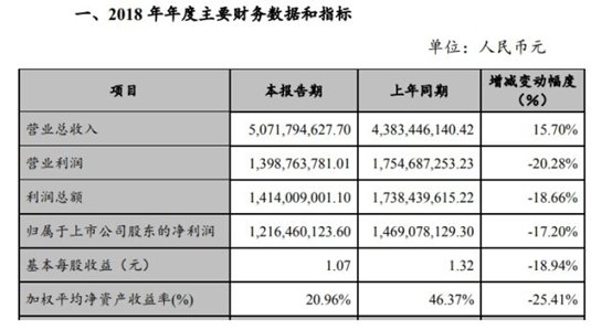 贛鋒鋰業(yè)發(fā)布2018年年度報告,實(shí)現(xiàn)營業(yè)收入50.04億元,同比增長14.15%;歸屬于上市公司股東的凈利潤12.23億元,同比減少16.73%;歸屬于上市公司股東的扣除非經(jīng)常性損益的凈利潤12.56億元,同比增長5.19%。