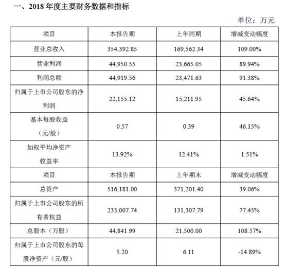 道氏技術(shù)的2018年度業(yè)績報表顯示,道氏技術(shù)2018年實(shí)現(xiàn)營業(yè)收入35.44億元,同比增長109.00%;實(shí)現(xiàn)歸屬于上市公司股東的凈利22.15億元,同比增長45.64%;歸屬于上市公司股東的所有者權(quán)益為23.30億元,同比增長77.45%。