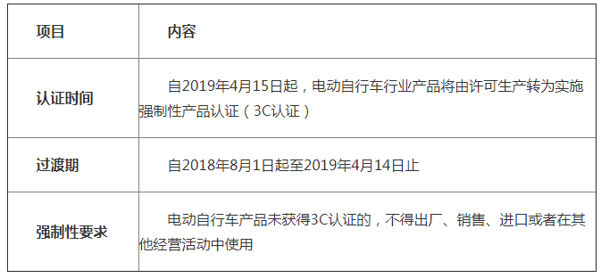 中國粉體網(wǎng)訊 2018年5月15日,根據(jù)國家標(biāo)準(zhǔn)管理程序,工業(yè)和信息化部組織修訂的(GB 17761-2018)《電動(dòng)自行車安全技術(shù)規(guī)范》強(qiáng)制性國家標(biāo)準(zhǔn),由國家市場監(jiān)督管理總局、國家標(biāo)準(zhǔn)化管理委員會(huì)批準(zhǔn)發(fā)布,并將于2019年4月15日正式實(shí)施。對于部分不符合新老國標(biāo)的存量電動(dòng)車,各地設(shè)置不超過5年的使用過渡期。為了配合新國標(biāo)的順利實(shí)施,同年7月,市場監(jiān)督總局、認(rèn)監(jiān)委發(fā)布電動(dòng)自行車產(chǎn)品由許可制轉(zhuǎn)為實(shí)施強(qiáng)制性產(chǎn)品認(rèn)證(CCC認(rèn)證)管理安排,自2019年4月15日起,電動(dòng)自行車產(chǎn)品未獲得3C認(rèn)證的,不得出廠、銷售、進(jìn)口或者在其他經(jīng)營活動(dòng)中使用。