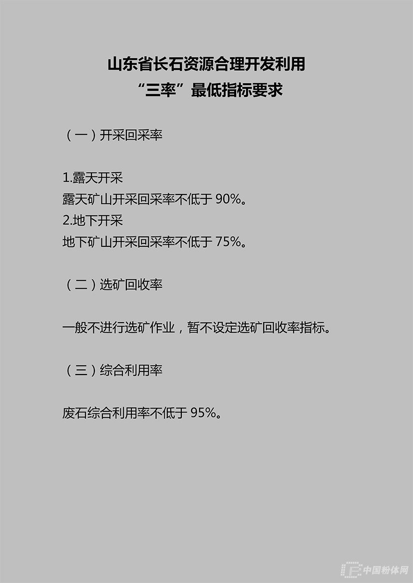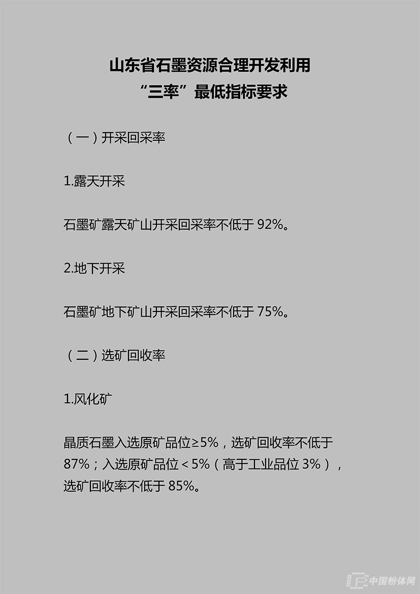 2019年4月16日,山東省自然資源廳發(fā)布公告,提出山東省石墨、水泥用灰?guī)r、耐火黏土、金剛石、巖鹽、冶金用白云巖、長石等7種礦產(chǎn)資源合理開發(fā)利用“三率”最低指標要求。
