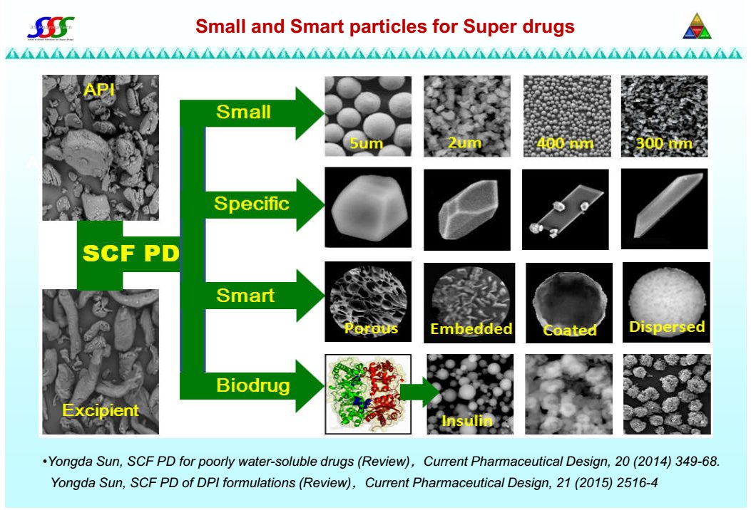 在采訪的最后,孫博士總結道:高端固體制劑需要高質量的藥物微粉,高質量的微粉需要全面的粉體表征。正所謂”工欲善其事,必先利其器“,這里的器有兩類,一是認知藥物微粉的各種分析儀器,二是制造高端藥物微粉的生產機器。利用分析儀器獲得了大量的數據之后,就能有目的的調控或者剪裁微粉各種物性,然后采用高端藥物微粉生產機器,例如SCF PD制藥設備,做出既小又有功能結構的藥物微粒,而這正是孫永達博士一直大力倡導推進的3S制藥產業(yè)化開發(fā)的新思路:make Small and Smart particles for Super drugs。