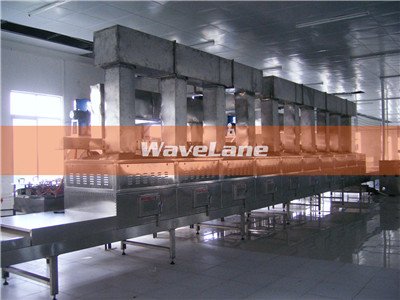 微波干燥是微波通過與產(chǎn)品直接相互作用將電磁能在瞬間轉(zhuǎn)化為熱能,實(shí)現(xiàn)對(duì)產(chǎn)品的快速脫水干燥的過程。微波是頻率在300MHz~300GHz的電磁波,被加熱介質(zhì)物料中的水分子是極性分子,在快速變化的高頻電磁場(chǎng)作用下,其極性取向?qū)㈦S著外電場(chǎng)的變化而變化,造成分子的運(yùn)動(dòng)和相互磨擦效應(yīng)。此時(shí)微波場(chǎng)的場(chǎng)能轉(zhuǎn)化為介質(zhì)內(nèi)的熱能,使物料溫度升高,產(chǎn)生熱化和膨化等一系列物化過程而達(dá)到微波加熱干燥的目的。微波干燥具有加熱迅速、加熱均勻、節(jié)能環(huán)保、工藝先進(jìn)、易控制等特點(diǎn)。
