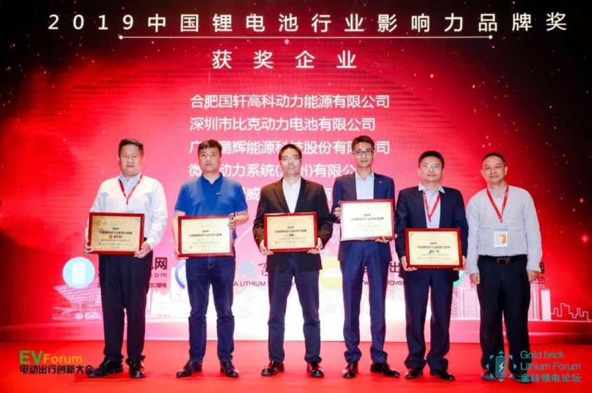 2019中國鋰電池行業(yè)影響力品牌獎-獲獎企業(yè)有:合肥國軒高科動力能源有限公司、深圳比克動力電池有限公司、廣東鵬輝能源科技股份有限公司、微宏動力系統(tǒng)(湖州)有限公司、天津市捷威動力工業(yè)有限公司