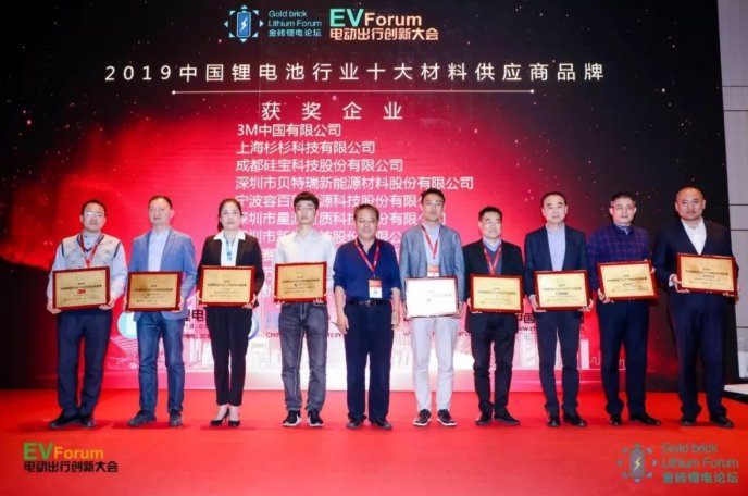2019中國鋰電池行業(yè)十大材料供應(yīng)商品牌獎-獲獎企業(yè)有:3M中國有限公司、上海杉杉科技有限公司