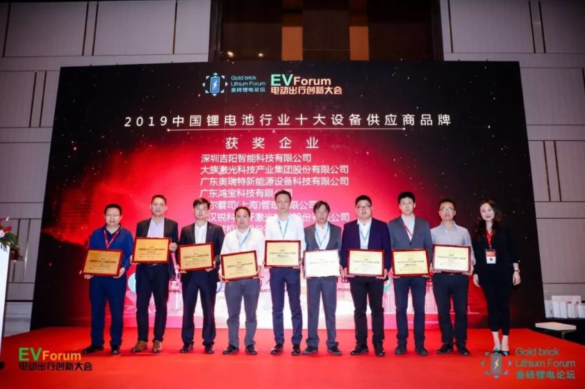 2019中國鋰電池行業(yè)十大設(shè)備供應(yīng)商品牌獎-獲獎企業(yè)有:深圳吉陽智能科技有限公司、大族激光科技產(chǎn)業(yè)集團(tuán)股份有限公司、廣東奧瑞特新能源設(shè)備科技有限公司、廣東鴻寶科技有限公司、卡爾蔡司(上海)管理有限公司、武漢銳科光纖激光技術(shù)股份有限公司、佑順發(fā)機(jī)械股份有限公司、福建星云電子股份有限公司、杭州?禉C(jī)器人技術(shù)有限公司、深圳力士智造科技有限公司