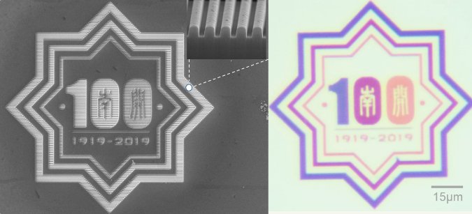 該超構(gòu)表面表現(xiàn)出明顯的結(jié)構(gòu)共振,展現(xiàn)出優(yōu)異的透射式結(jié)構(gòu)色效果。該成果標(biāo)志著人們已經(jīng)具備了基于鈮酸鋰實(shí)現(xiàn)納米尺度下對(duì)光行為進(jìn)行精細(xì)操控的能力,相關(guān)加工技術(shù)將為鈮酸鋰這一獨(dú)特的光電材料在微納光子學(xué)、集成光子學(xué)等領(lǐng)域的應(yīng)用開啟大門。