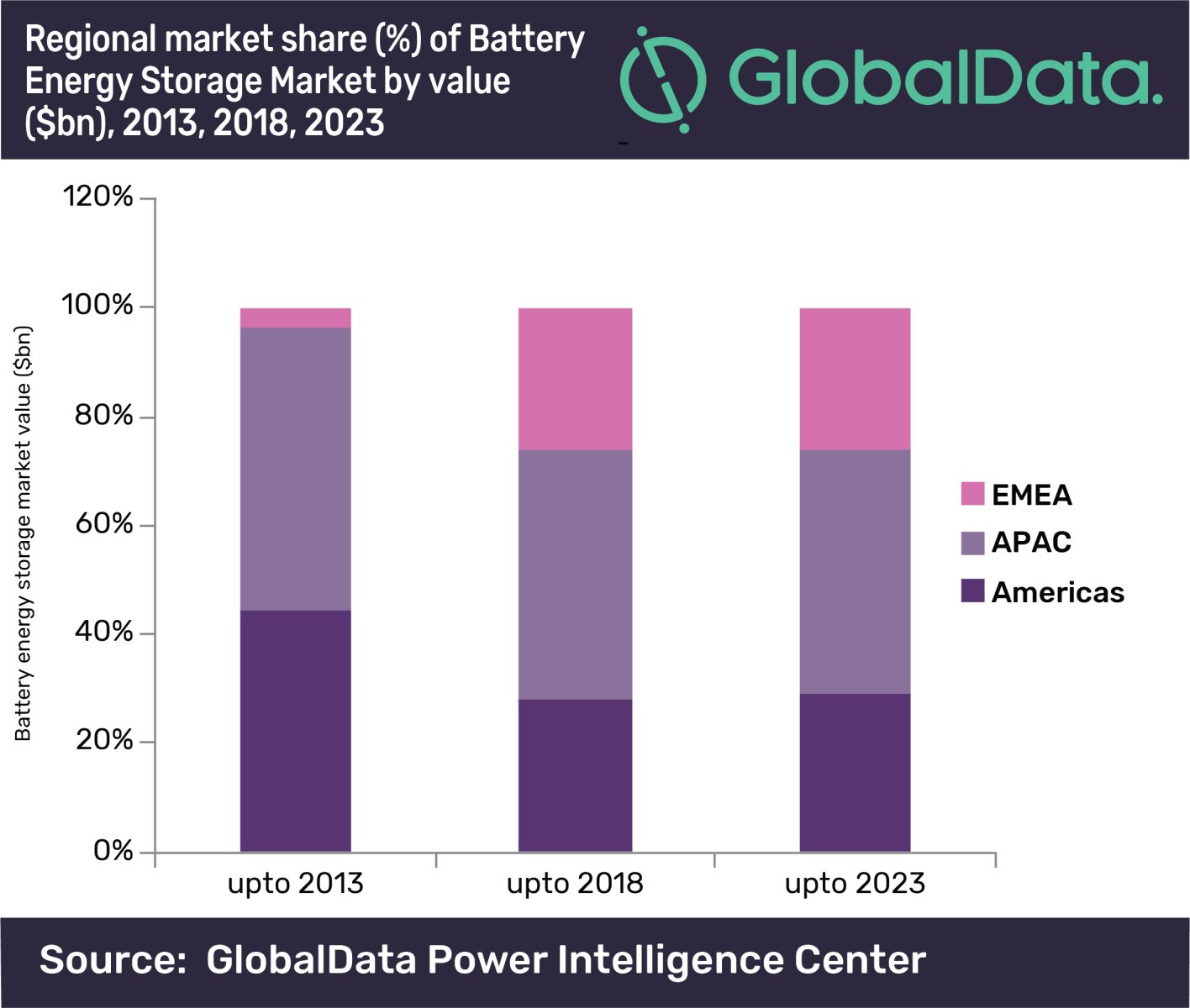 中國(guó)粉體網(wǎng)訊 全球電池儲(chǔ)能市場(chǎng)預(yù)計(jì)到2023年將增長(zhǎng)到131.3億美元,全球知名的研究機(jī)構(gòu)GlobalData在其最新的研究報(bào)告中透露,亞太地區(qū)(APAC),歐洲、中東和非洲(EMEA)將成為預(yù)測(cè)期間電池儲(chǔ)能系統(tǒng)的主要市場(chǎng)。