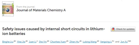 第一項(xiàng)成果:Safety issues caused by internal short circuits in lithium-ion batteries(鋰離子電池內(nèi)部短路引起的安全問(wèn)題)。該成果是,華為中央研究院聯(lián)合北航的研究人員提出了一種具有高度重復(fù)性的研究電池內(nèi)短路的新方法,并結(jié)合實(shí)驗(yàn)和仿真手段考察了內(nèi)短路發(fā)展過(guò)程。