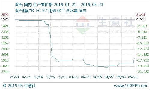 中國粉體網(wǎng)訊 5月23日螢石商品指數(shù)為103.73,較昨日上升了0.88點(diǎn),較周期內(nèi)最高點(diǎn)127.49點(diǎn)(2019-01-03)下降了18.64%,較2016年12月18日最低點(diǎn)49.21點(diǎn)上漲了110.79%。(注:周期指2011-09-01至今)