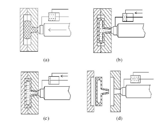 a:熔體 b:氣體引入 c:氣體保壓 d:氣體排出和脫模