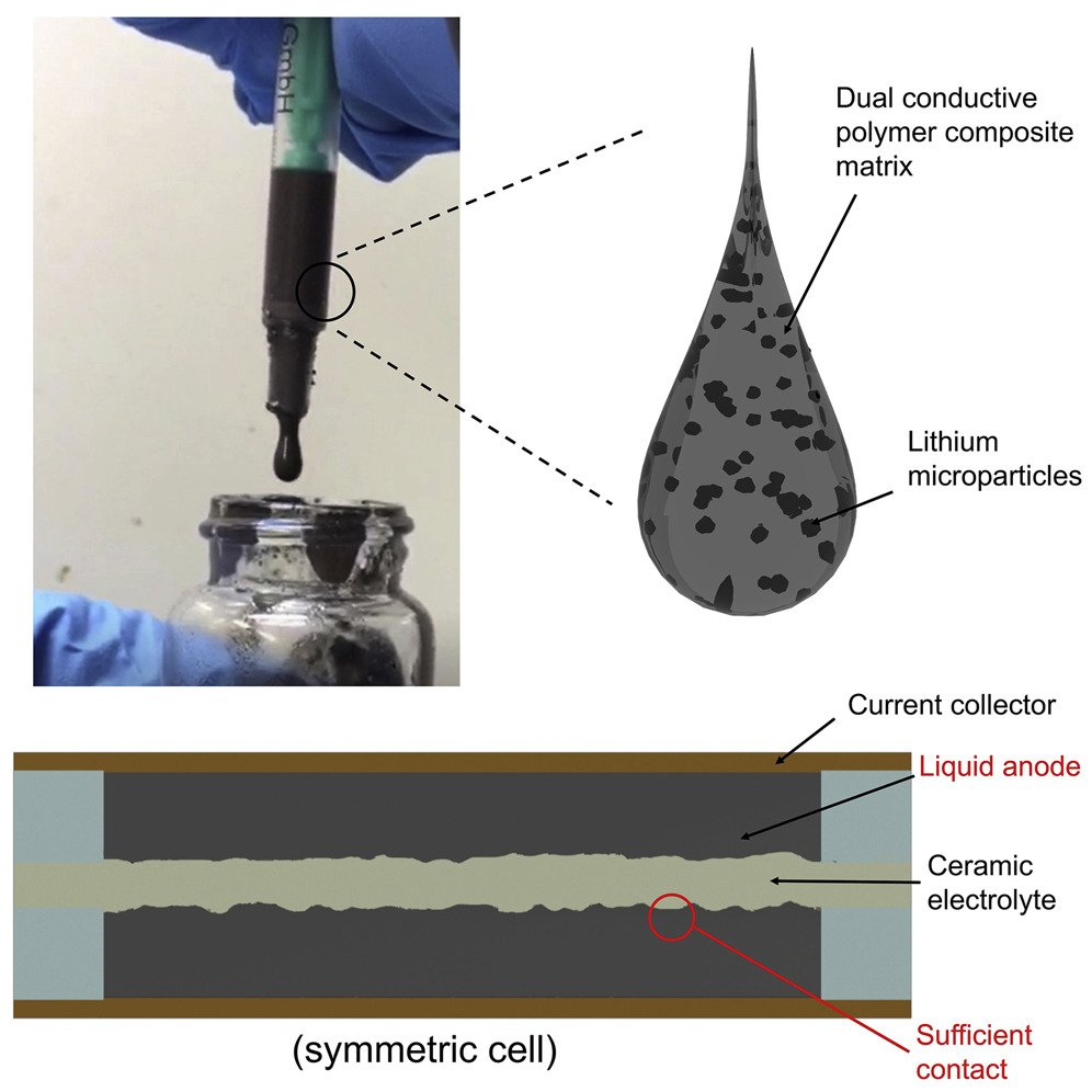卡內(nèi)基梅隆大學(xué)化學(xué)系博士生李司珮(音譯)和卡內(nèi)基梅隆大學(xué)材料科學(xué)與工程系博士生王漢(音譯)克服這一缺點(diǎn)創(chuàng)造一種可用作金屬陽極的半流體新型材料。