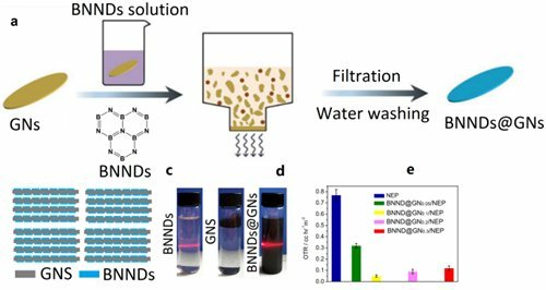 中國科學院寧波材料技術與工程研究所先進涂料與粘合劑余海斌團隊針對石墨烯/聚合物復合防腐涂層在破損后加速金屬基體腐蝕這一隱患,采用氮化硼納米點(BNNDs)作為商業(yè)化石墨烯的分散劑,利用其原子結構和表面化學性能實現(xiàn)其在聚合物中的均勻分散。通過化學方法獲得的BNNDs通常含有豐富的親水基團。這些親水基團可以在水中進行電離,賦予BNNDs優(yōu)異的溶解性。BNNDs被認為是單層或半層絕緣氮化硼納米片,橫向尺寸小于50nm。BNNDs通過強烈的π-π作用吸附于石墨烯表面,以增加其分散性。同時,BNNDs的存在屏蔽了石墨烯的導電特性,有效抑制了其陰極腐蝕促進活性。電化學測試表明,BNNDs改性的石墨烯材料具有優(yōu)良的防護性能,復合涂層的腐蝕速率相對空白涂層下降了280倍,涂層電阻增加了2個數(shù)量級。鑒于BNNDs不會影響石墨烯的本征特性,因此,BNNDs分散石墨烯有望快速推進商業(yè)化石墨烯在防腐領域的應用。