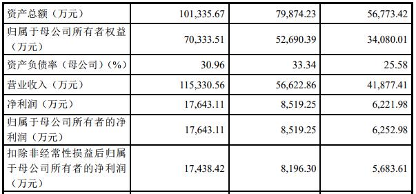 根據(jù)嘉元科技招股說明書,公司2016年-2018年度分別實(shí)現(xiàn)營業(yè)收入4.19億元、5.66億元、11.53億元,扣非凈利潤分別為0.57億元、0.82億元、1.74億元。詳情如下: