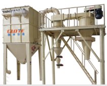 小于-10目的原料,由進料裝置經(jīng)入料中空軸螺旋均勻地進入磨機倉,倉內(nèi)設(shè)有陶瓷襯板,內(nèi)裝不同規(guī)格鋼玉球,筒體轉(zhuǎn)動產(chǎn)生離心力將介質(zhì)球帶到一定高度后落下,對物料產(chǎn)生沖擊和研磨作用。達到要求的粉狀物通過卸料箅板排出,完成粉磨作業(yè)。粉磨后的物料由入料口進入分級機,通過調(diào)節(jié)分級輪(變頻控制,無級調(diào)速)的轉(zhuǎn)速,并以合理的二次進風(fēng),在分級區(qū)內(nèi)形成合理穩(wěn)定的氣固兩相流,利用分級輪旋轉(zhuǎn)產(chǎn)生離心力,和引風(fēng)機負(fù)壓產(chǎn)生吸引力的相互作用,實現(xiàn)對物料的有效分級。粗顆粒由粗料返回裝置返回球磨機繼續(xù)研磨,成品則由自動包裝機完成打包作業(yè)。整個系統(tǒng)配有除塵器,采用電磁脈沖自動清灰,攜帶粉塵的氣體進入除塵器后,粉塵被濾袋過濾,附著在濾袋外表面的粉塵在脈沖反吹氣體的作用下散落在底部被收集,經(jīng)過過濾后的潔凈氣體通過風(fēng)機排入大氣。