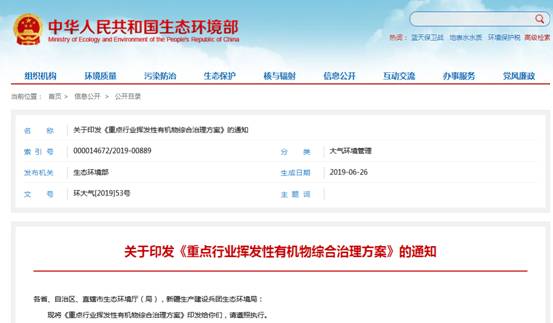日前,生態(tài)環(huán)境部印發(fā)了《重點行業(yè)揮發(fā)性有機物綜合治理方案》的通知!斗桨浮分赋,到2020年,建立健全VOCs(揮發(fā)性有機物)污染防治管理體系,重點區(qū)域、重點行業(yè)VOCs治理取得明顯成效,完成“十三五”規(guī)劃確定的VOCs排放量下降10%的目標任務,協(xié)同控制溫室氣體排放,推動環(huán)境空氣質量持續(xù)改善。