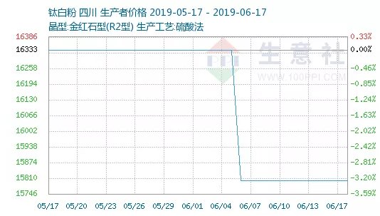 近一段時間,國內(nèi)鈦白粉市場行情低迷,一直處于弱勢下行狀態(tài),鈦白粉5月初價格為16666.67元/噸,6月17日,價格為15800元/噸,下跌了866.67元/噸。降幅達(dá)到5.2%。