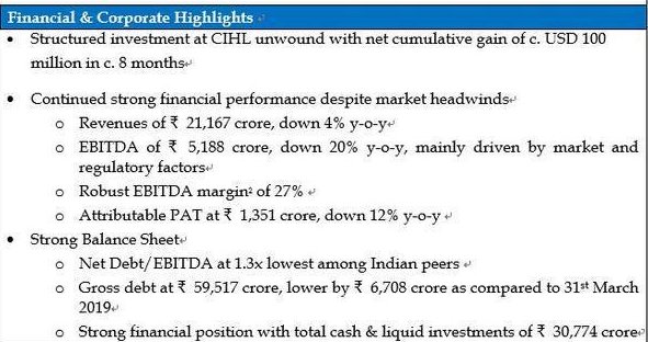 中國粉體網(wǎng)訊 韋丹塔(Vedanta Ltd)7月26日公布了截止6月30日的第一季度財(cái)報(2019年4月-6月),報告顯示該季度營收為2116.7億盧比(約30.7億美元),同比下降4%。稅后利潤(PAT)為135.1億盧比(約合1.96億美元),同比下降12%。
