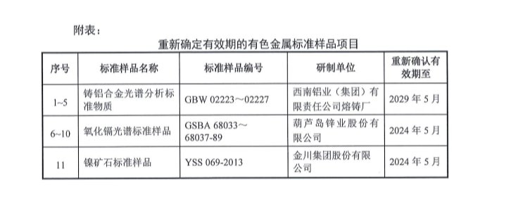 關(guān)于發(fā)布第二十五批《重新確認(rèn)有效期的有色金屬標(biāo)準(zhǔn)樣品》的通知