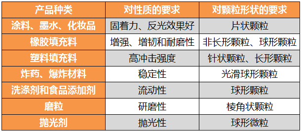 表2 某些工業(yè)產(chǎn)品對(duì)粉體材料顆粒形狀的要求