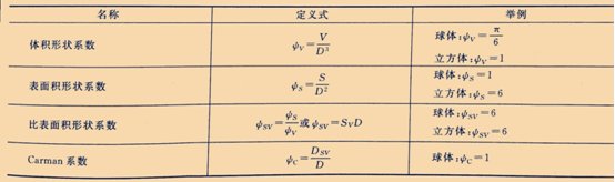 表中Carman形狀系數(shù)φc是與顆粒層流動(dòng)阻力有關(guān)的形狀系數(shù),被定義為: